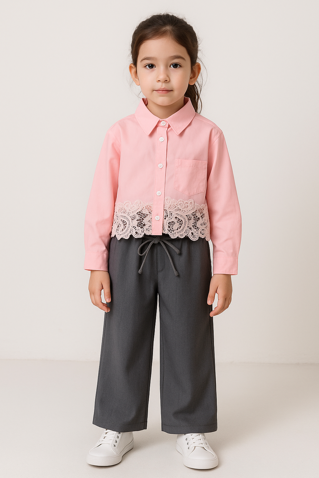 Craquez pour notre superbe chemise en dentelle rose bonbon pour filles et adolescentes de 4 à 14 ans ! Laissez-vous charmer par le détail en dentelle sur le bas, pour un look féminin et tendance. Parfait pour toutes les occasions, cette chemise ajoutera une touche de douceur à votre garde-robe.